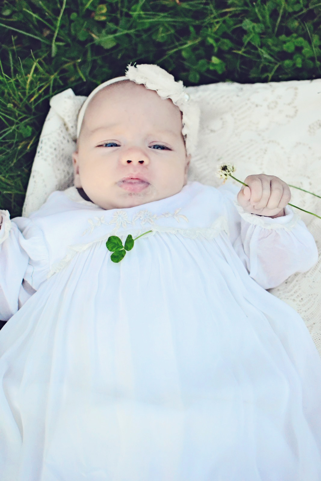 Our Father in Heaven, by the power of the Holy Melchizedek Priesthood which we hold, we hold this infant in our arms, and give her a name and a blessing. The name that she will be known on the records of the church is Clover Valentine Jacobs. Clover, at this time we give you a blessing that you will be healthy and strong. Our Father in Heaven wants you to know how much you are loved, and as you are here with your family members and friends, please know that you have good influences and examples all around you. Follow those examples throughout your life.